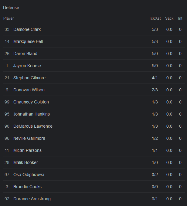 Micah Parsons seems to have blamed his teammates for losing by a gillion at home to a significantly less talented team in the playoffs. This must have you to think, “Oh, parsons must’ve had a good game.” Well lets check the box score: