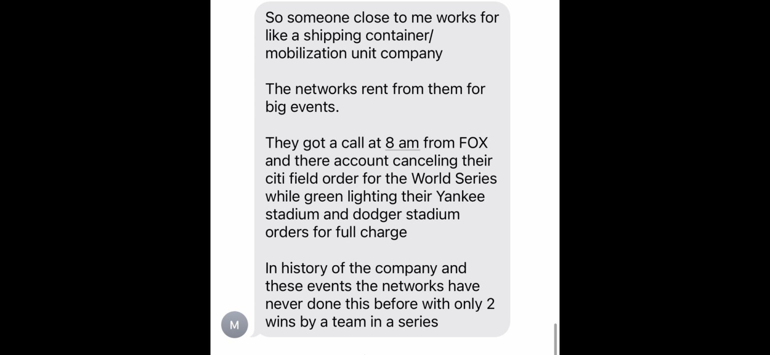 Fox Is Cancelling Their Order To Citi Field For The World Series.